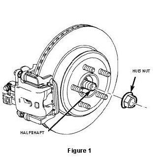 3. While a helper applies the brakes to keep the hubs from rotating, remove and discard both rear hub nuts from the right and left rear halfshafts (Figure 1).