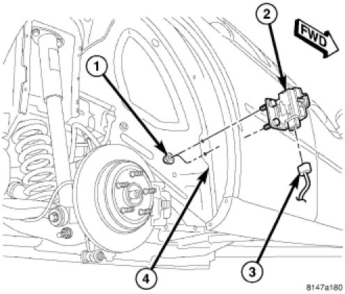 Remove mounting nuts (1), then remove transponder (2) from body seam flange (4).