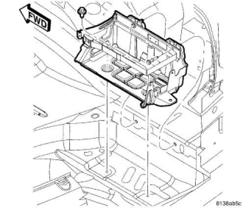 1. Position the battery tray in the vehicle and install the mounting fasteners.
