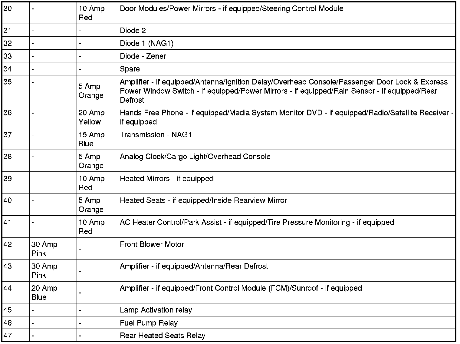 Rear Power Distribution Center Fuses