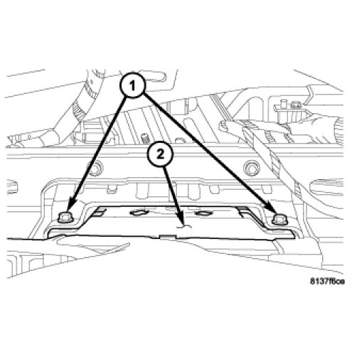 2. Firmly slide the steering column upward against the instrument panel and loosely install the pivot bolt and nut (2).