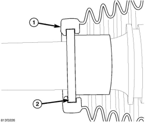 8. Check and make sure plastic collar (2) on column shaft is engaged in groove within boot (1).
