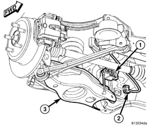 8. Export Only - If servicing right spring link, connect headlamp leveling sensor (1) link at spring link (3).