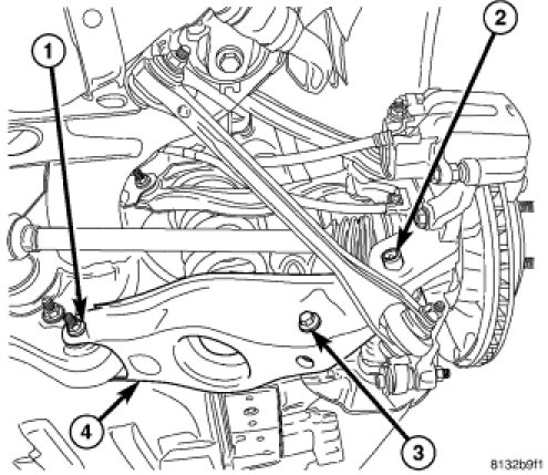 12. Tighten spring link bolt at crossmember to 108 Nm (80 ft. lbs.) torque.