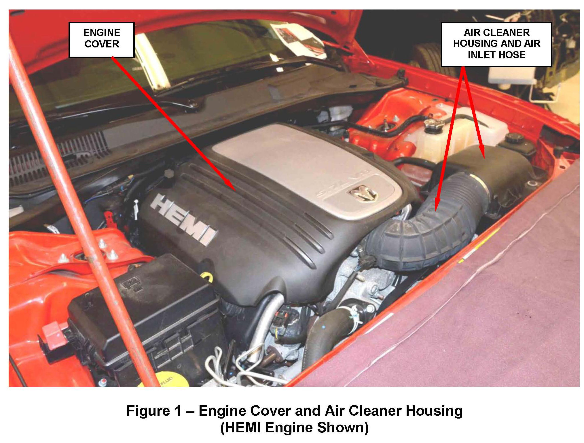 1. Open the hood.2. For vehicles with a HEMI engine, remove and save the engine cover from the engine (Figure 1).