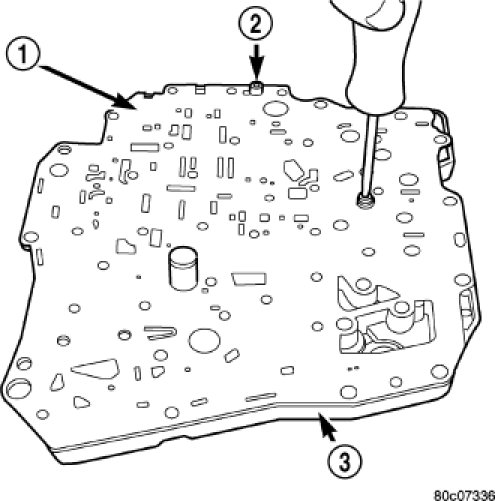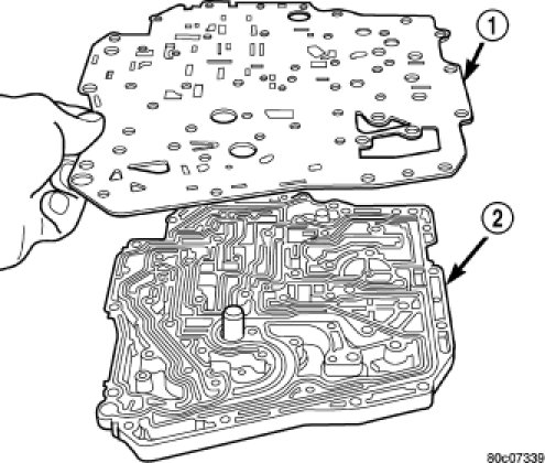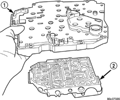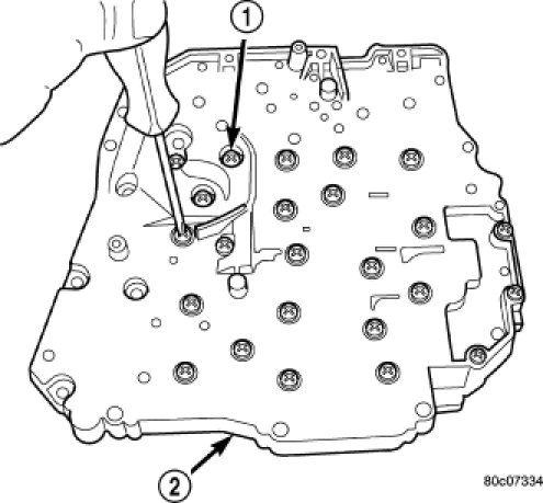 11. Install the transfer plate (1) to the valve body (2).