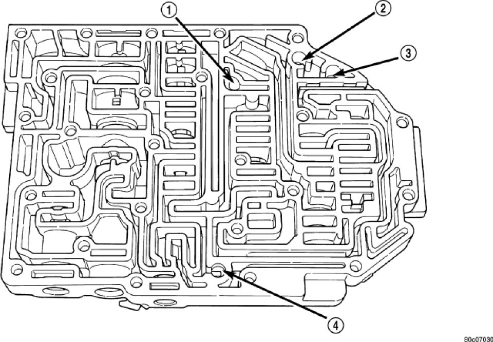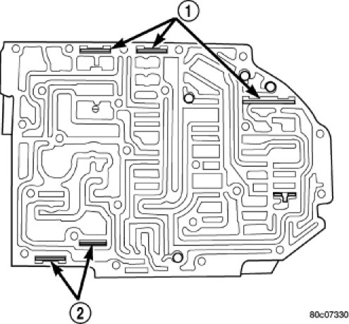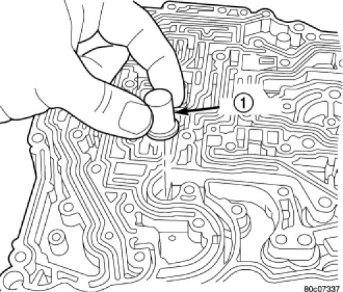 6. Install check balls into position as shown. If necessary, secure them with petrolatum or transmission assembly gel for assembly ease.