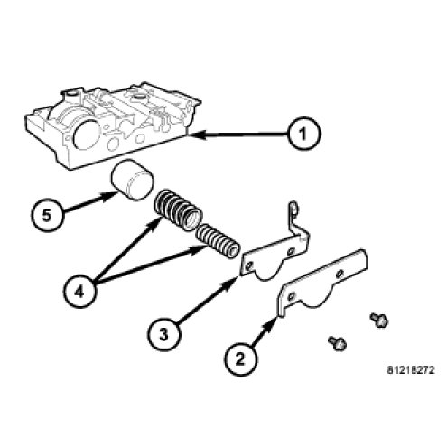5. Install 2/4 Accumulator components (1-5) as shown. Torque 2/4 Accumulator retainer plate to 5 Nm (45 in. lbs.).