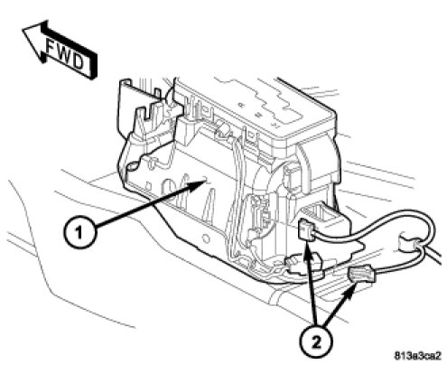 9. Install the wiring harness connectors (2) to the shifter assembly.