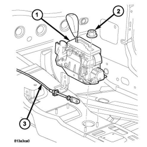 8. Install the gearshift cable (1) to the shift lever pin (3).