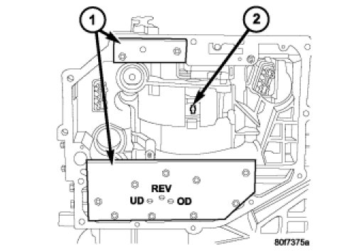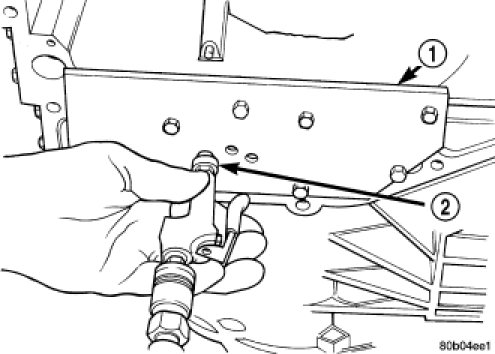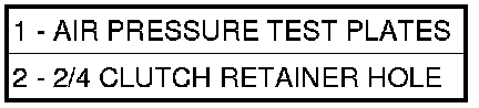 Apply air pressure to the feed hole located on the 2/4 clutch retainer (2). Look in the area where the 2/4 piston contacts the first separator plate and watch carefully for the 2/4 piston to move rearward. The piston should return to its original position after the air pressure is removed.