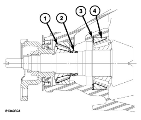 4. Install pinion tail bearing and Cone 6740 (4). Tighten Cone 6740 by hand until 3.4 Nm (30 in. lbs.) of rotating torque is measured at Screw 6741 (5).