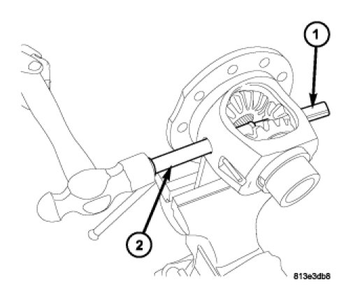 5. Drive out pinion shaft-to-case roll pin using hammer and suitable punch.