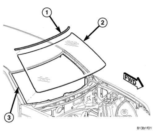 CAUTION: To help prevent water leaks, partially roll down the left and right door glass before installing the windshield. This avoids pressurizing the passenger compartment if a door is slammed before the urethane is cured.