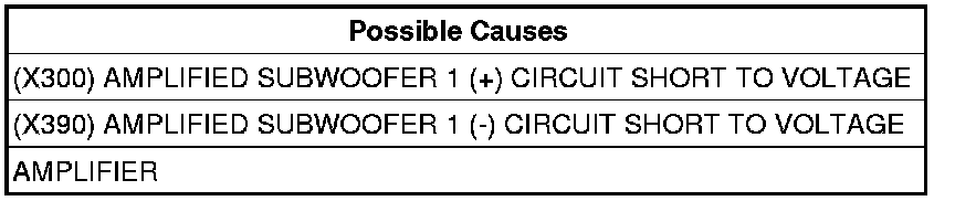 - Repair the (X300) Amplified Subwoofer 1 (+) circuit for a short to voltage.