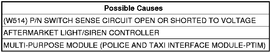 Measure the voltage of the (W514) P/N Switch Sense circuit between ground and the Multi-Purpose Module (Police And Taxi Interface Module-PTIM) C2 harness connector.