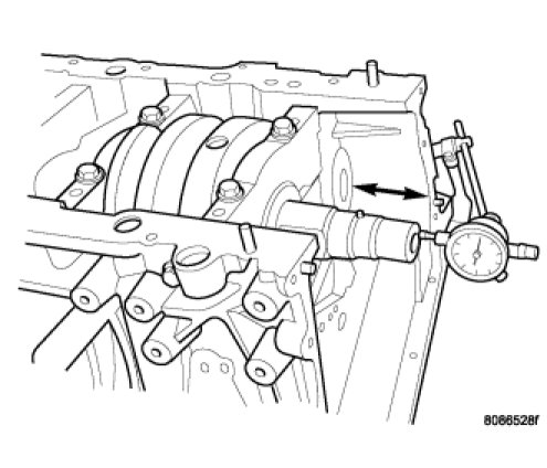 4. Move crankshaft all the way to the front and read the dial indicator. For crankshaft end play clearances Engine Specifications.