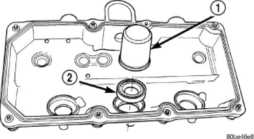 b. Position new seal (2) with the part number on seal facing cylinder head cover.