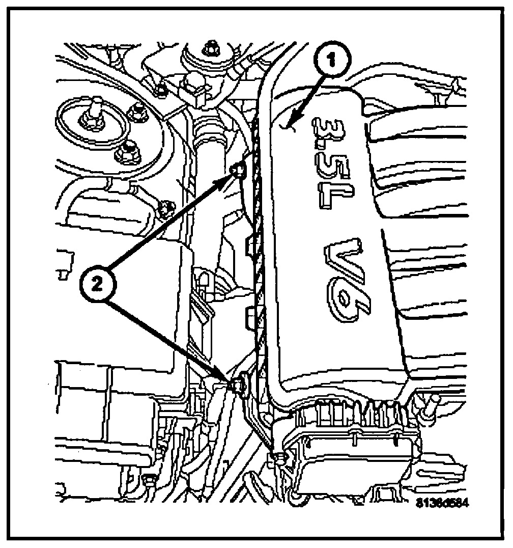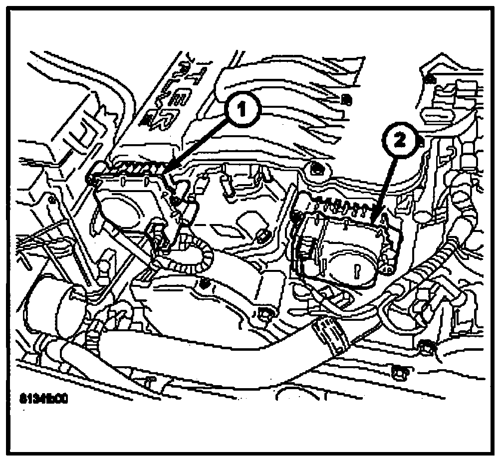 9. Disconnect the electrical connectors from the manifold tuning valve (1) and short runner valve (2).