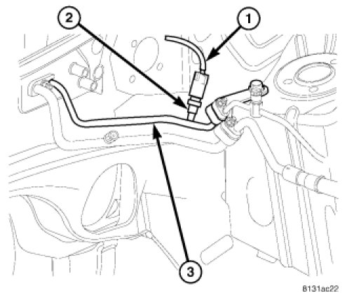 3. Remove the A/C pressure transducer from the A/C liquid line (3) and remove and discard the O-ring seal..