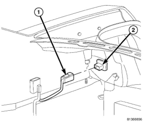 3. From within the trunk, connect the electrical connector (1) to tail lamp unit (2).