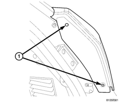 5. Install the two push pin fasteners (1) in the liftgate opening.