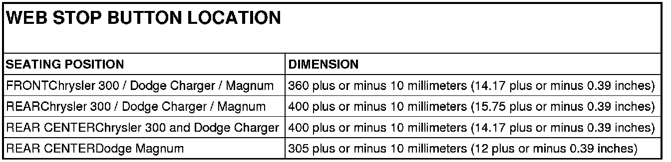 2. Find the appropriate dimension in the Web Stop Button Location table. Measure and mark that distance (4) in the center of the belt webbing from the point where the webbing is secured to the seat belt lower anchor plate (3).