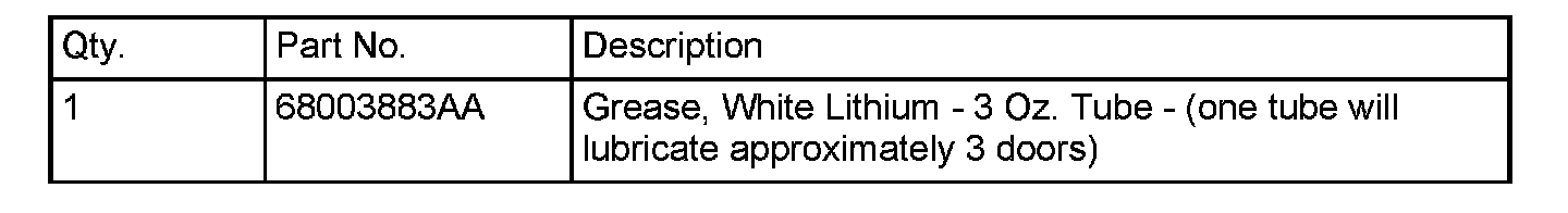 3. Apply 0.5 oz. of white lithium grease pn 68003883AA to metal rail between slider fingers.