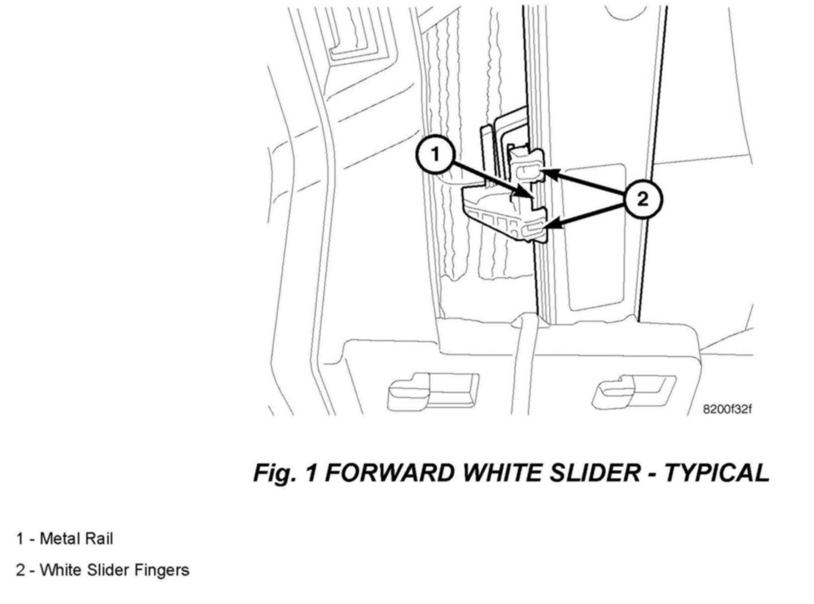 4. Apply 0.5 oz. of white lithium grease pn 68003883AA to metal rail between slider fingers (Fig 1).