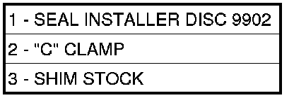 a. Position seal installer disc 9902 (1) between the "C" clamp (2) and the new transmission fill tube seal