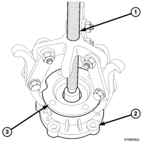 3. Using Spanner Wrench 6958 (2), remove pinion flange nut.