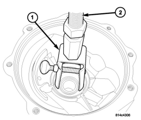 11. Using Remover 9664 (1) and Slide Hammer C-637 (2) , remove differential side bearing (inboard) cup.