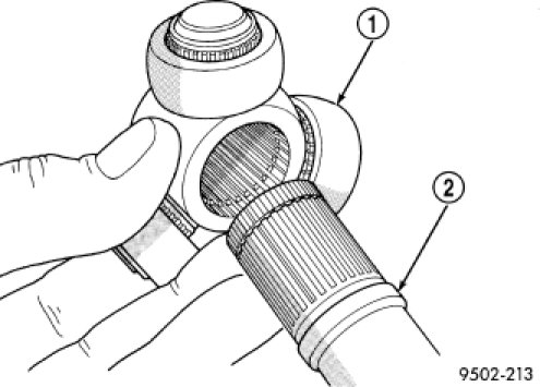 6. Align tripod housing (1) with spider assembly (2) and then slide tripod housing over spider assembly and interconnecting shaft.