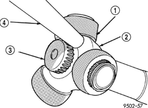 4. Install the spider assembly to interconnecting shaft retaining snap ring (3) into groove on end of interconnecting shaft. Be sure the snap ring is fully seated into groove on interconnecting shaft.