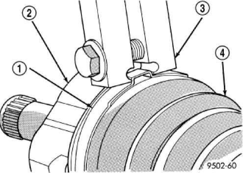 8. Clamp sealing boot (4) onto interconnecting shaft (3) using Crimping tool C-4975-A and the following procedure. Place Crimping tool C-4975-A over bridge of clamp. Tighten nut on Crimping tool C-4975-A until jaws on tool (2) are closed completely together, face to face.