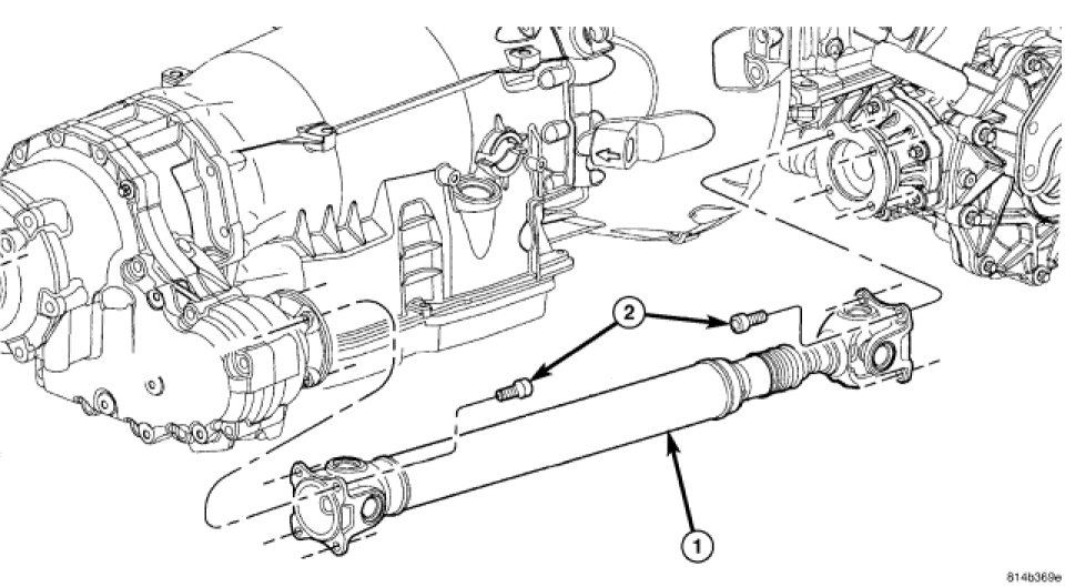 4. Torque propeller shaft-to-transfer case and axle flange bolts (2) to 61 Nm (45 ft. lbs.).