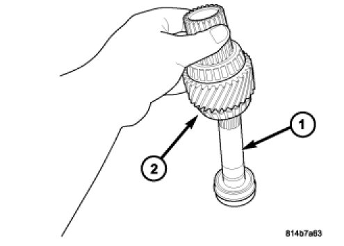 20. Remove the input gear and hollow shaft assembly (1) from the front housing (2).