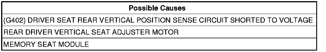 - Inspect the position sense wire for a possible short to voltage from another circuit, if OK replace the Memory Seat Module.