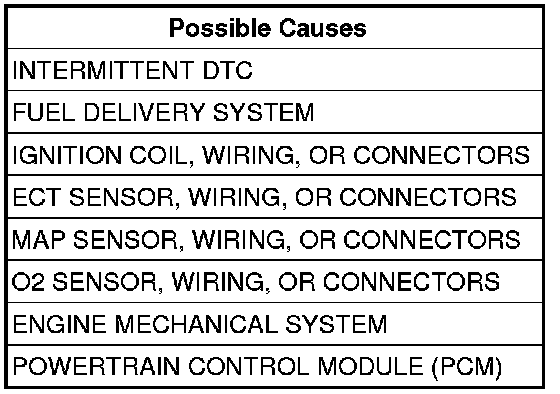 NOTE: Misfire may occur and may not be caused by component failure. Any of the following conditions can cause a misfire: