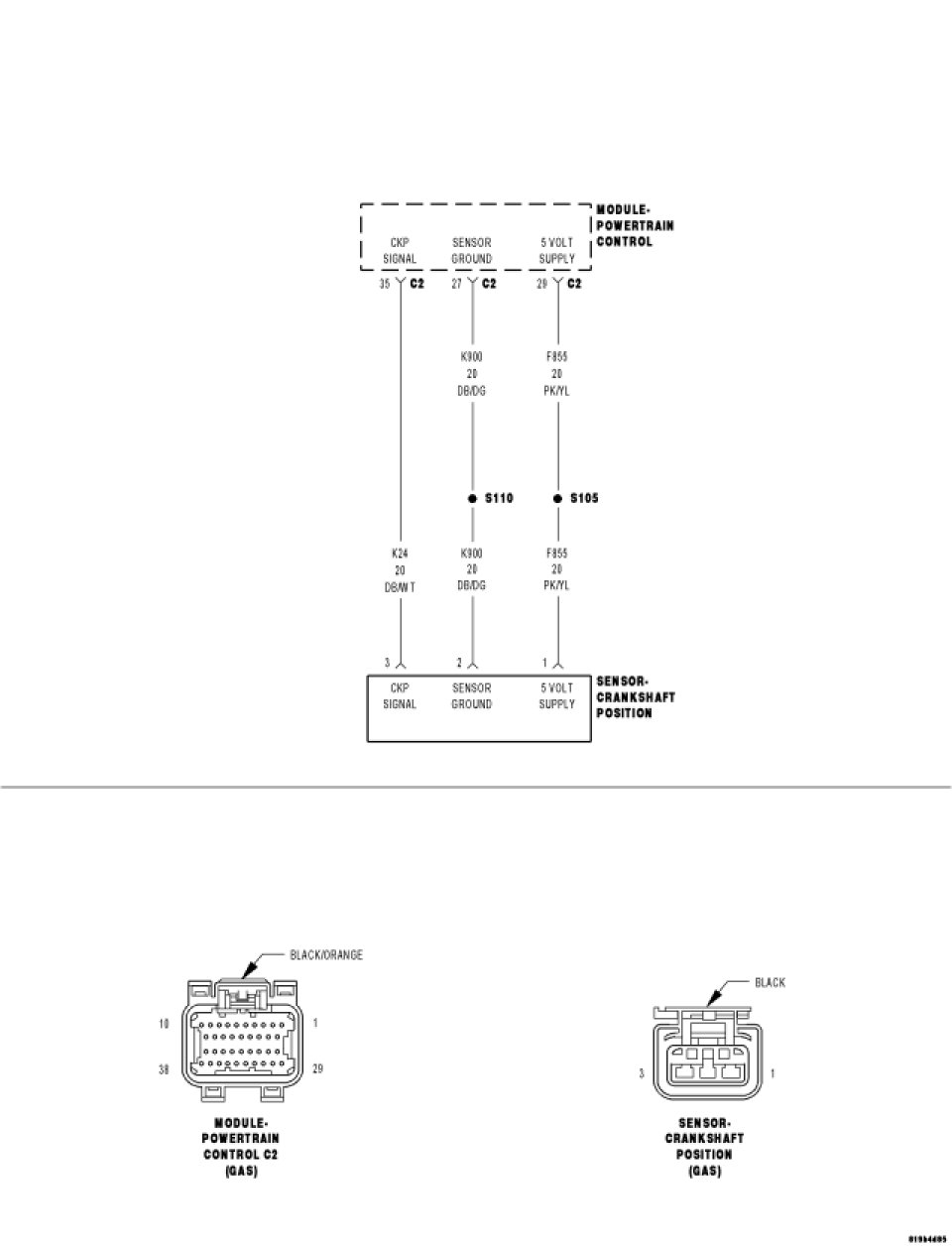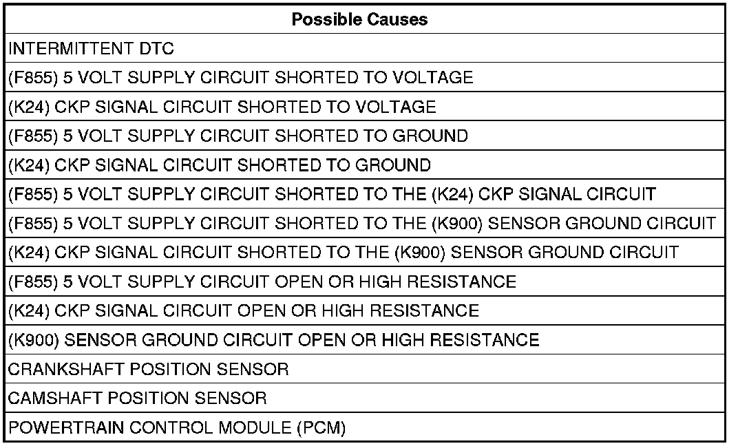 - Repair the (F855) 5 Volt Supply circuit for a short to the (K24) CKP Signal circuit.