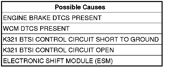 - Repair the (K321) BTSI Control circuit for a short to ground.