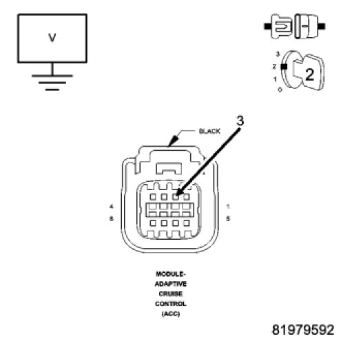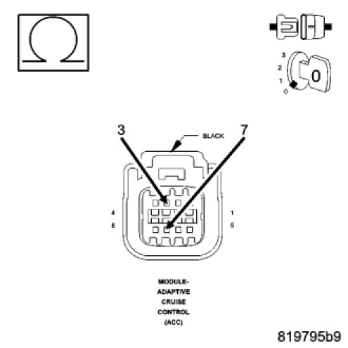 - Inspect the wiring and connectors for damage or shorted circuits. If ok, replace and program the ACC Module.