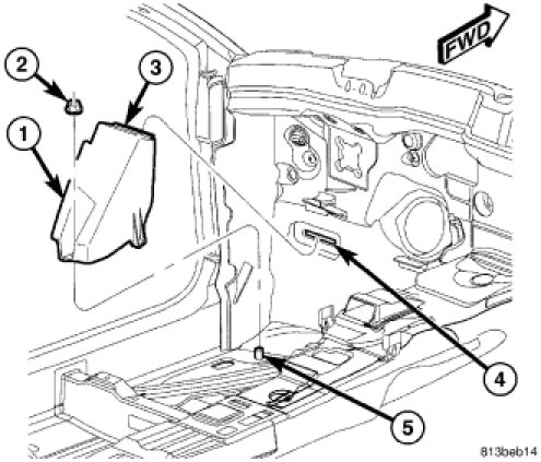 6. Reinstall the trim onto the driver side lower cowl side inner panel. Cowl Trim - Installation.