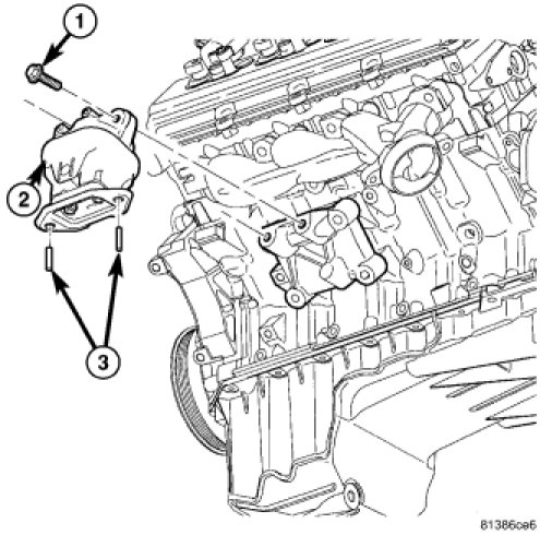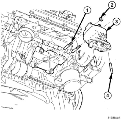 9. Install the left side engine mount studs (3) and nuts. Torque the studs and nuts to Nm ( ft. lbs.).