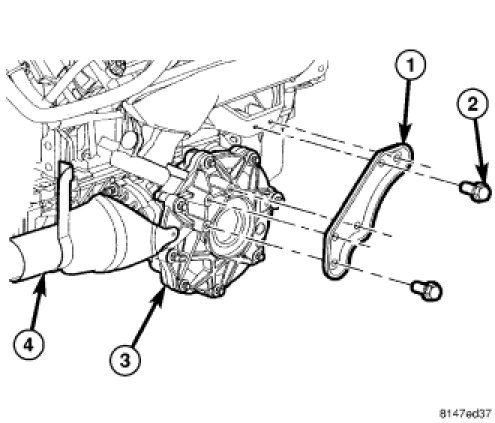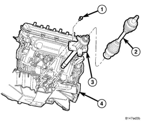 15. Remove the differential support bracket (1) from the differential to the engine block.
