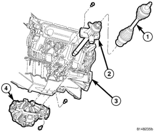 17. Rotate the differential (4) so the drive flange is facing forward and the oil pan side is facing up. Remove the differential out through the opening at the rear of the cradle.
