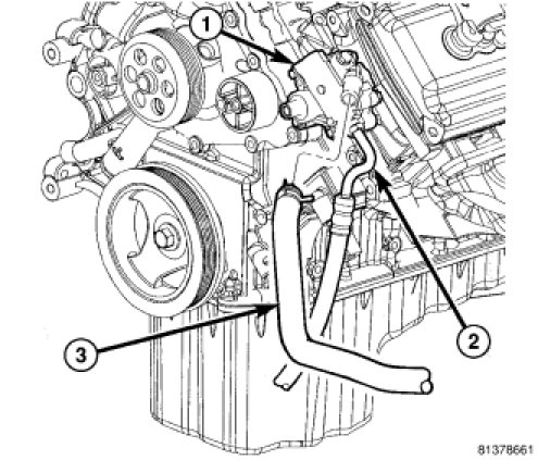 4. Install pressure hose (2) to pump (1). Tighten pressure hose tube nut to 47 Nm (35 ft. lbs.) torque.