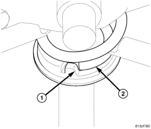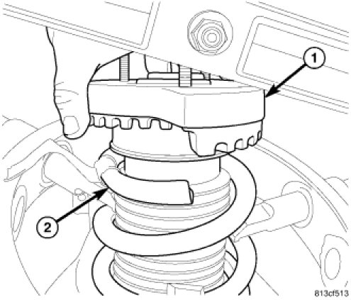4. If separated, install upper mount (1) onto coil spring (2). Match step in upper isolator to end of spring coil.