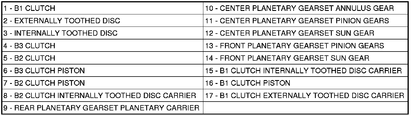Three multiple-disc holding clutches, the front, B1 (1), middle, B3 (4), and rear multiple disc clutches, B2 (5), are located in the planetary gear sets in the transmission housing.