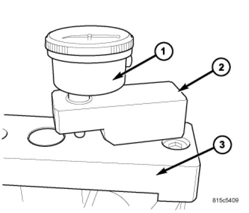 9. Install Scooter Block (2) and dial Indicator (1) on gauge plate 9681-2 (3).